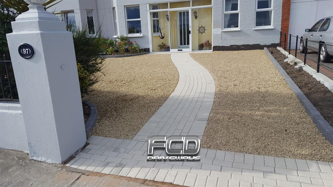 Some owners prefer a smooth surface as an entrance to the house so we provide an option where you can gravel the driveway and directly in front of the house, We can insert a nice paving area to split the gravel area and allow a clean and smooth entrance to the home